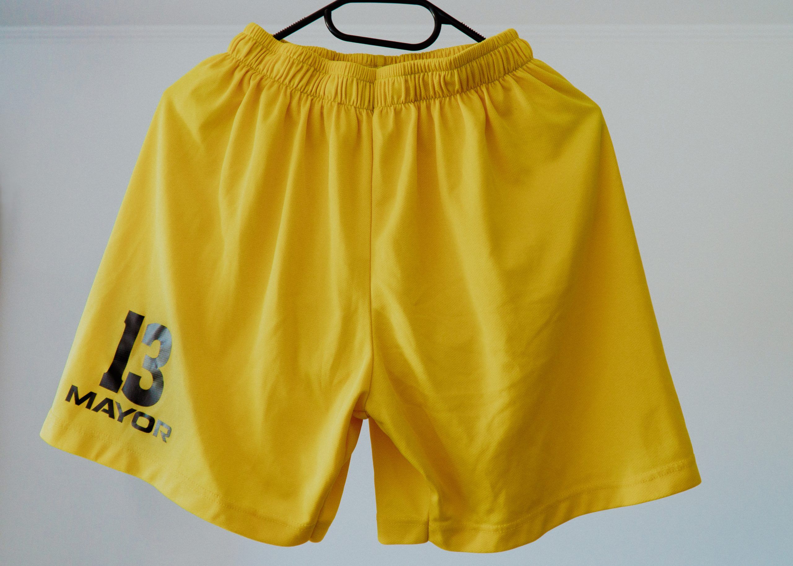Spodenki pochodzą z różnych sezonów, zawierają oznaczenia sponsora oraz numer.